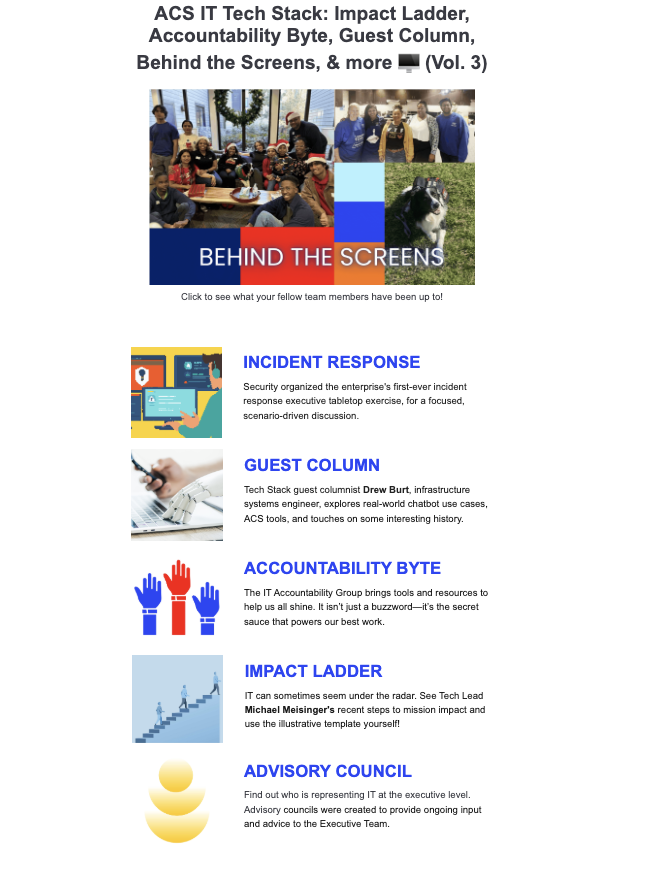 I am responsible for the entirety of the bimonthly newsletter for an internal department at a large nonprofit.