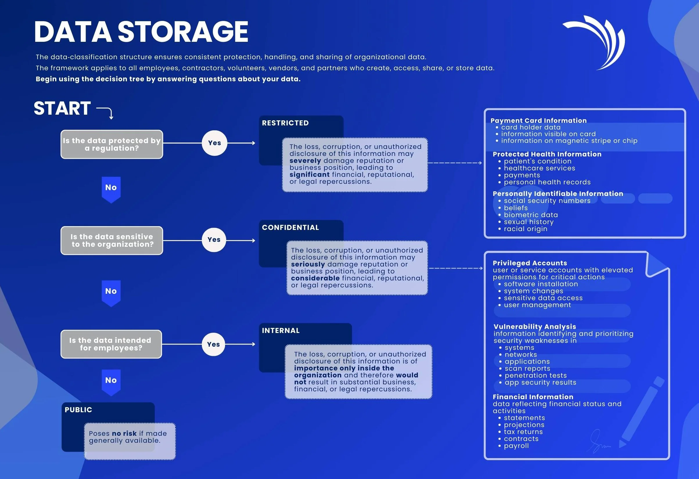I developed an Information Technology decision tree around data storage. The illustration allows employees to easily align with security standards and understand complex information through clear actionable messaging. October 2025
